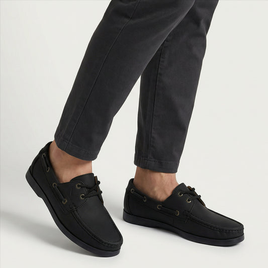 Apaches náuticos cuero negro con cordones
