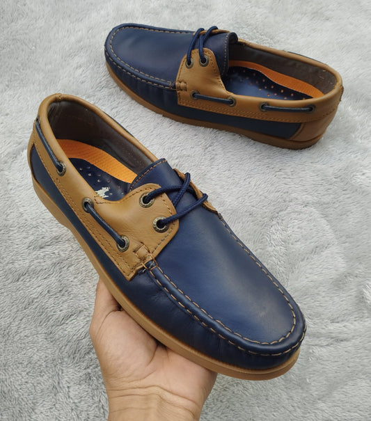 Apaches Náuticos de cuero rojo con cordones y costuras blancas