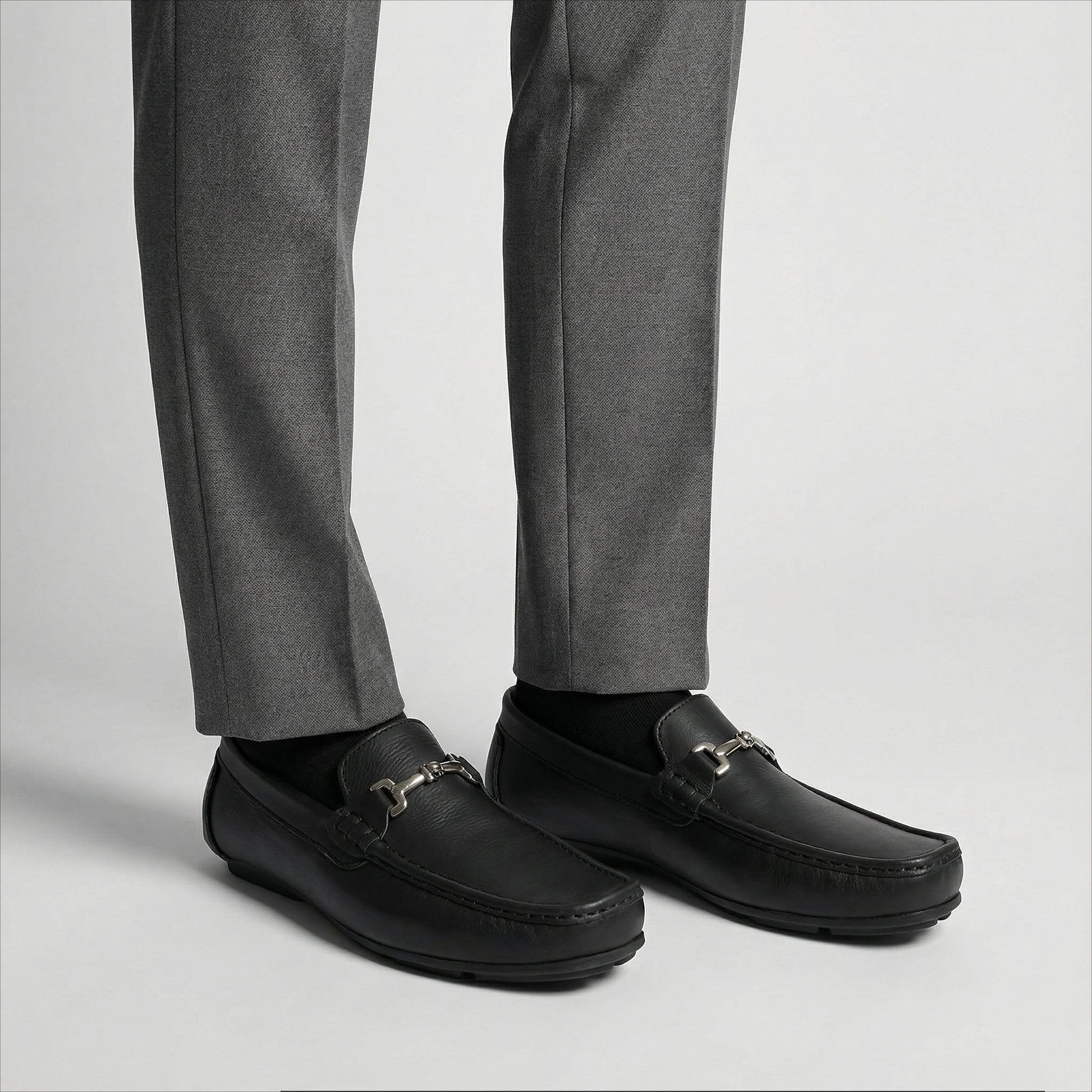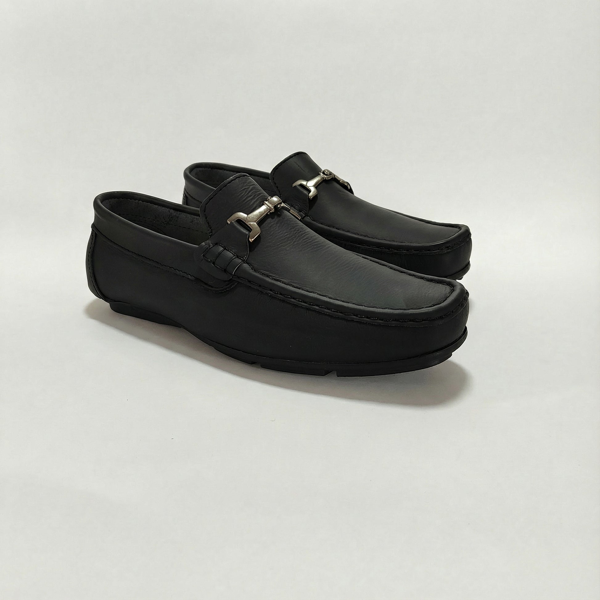 Estos mocasines destacan por su diseño sofisticado y su cómodo ajuste. Su tono Negro combinado con un elegante detalle metálico en el empeine, les da un toque único, ideal para ocasiones casuales o semiformales. La suela flexible con diseño antideslizante garantiza confort en cada paso.